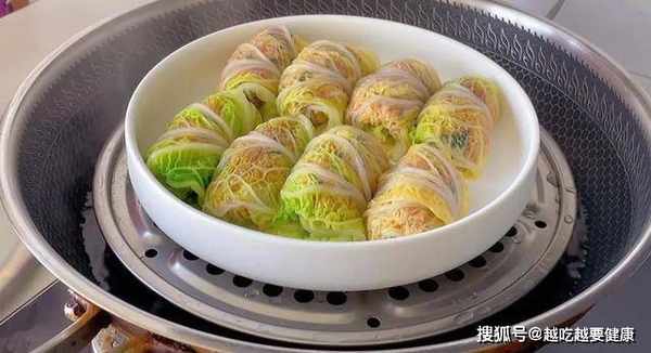 8、蒸熟后,这个白菜卷肉末就做好了,不仅造型好看,味道还好吃,一口吃下,有白菜清香,也有肉香,大家可以试着做。