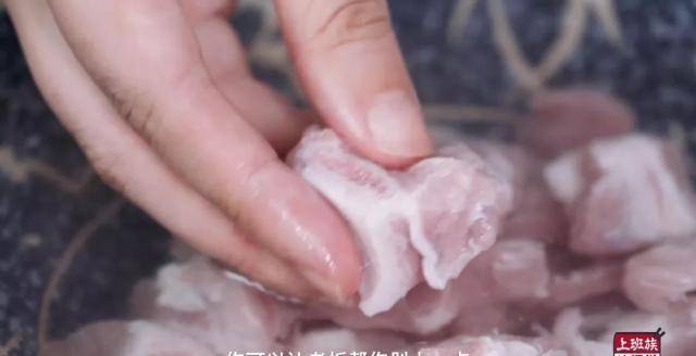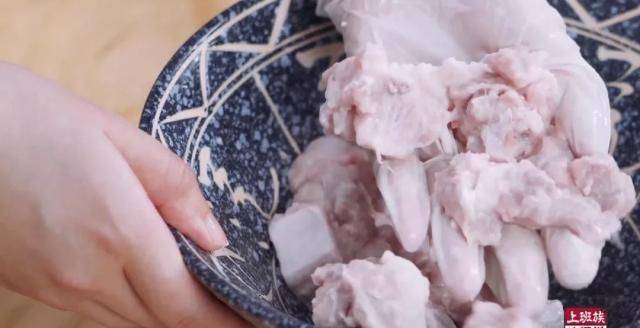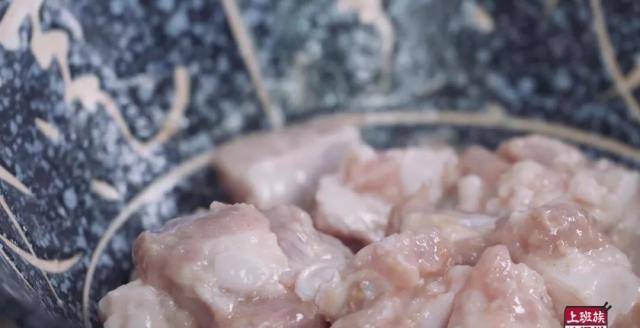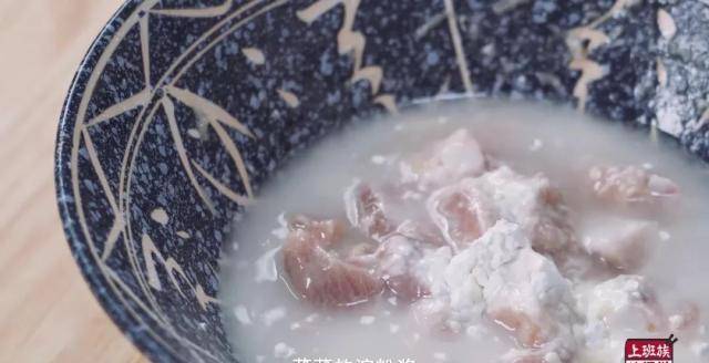 接着来处理排骨,沥干水分后加入10g玉米淀粉抓匀到这种若有若无的状态;