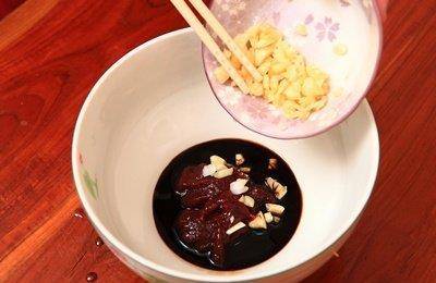 将酱油、韩式辣椒酱、白糖、蒜末、水约300c.c.混合调匀备用。
