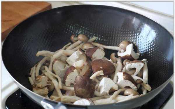 少许橄榄油大火快炒菇类,炒到出水后取出沥干水份。