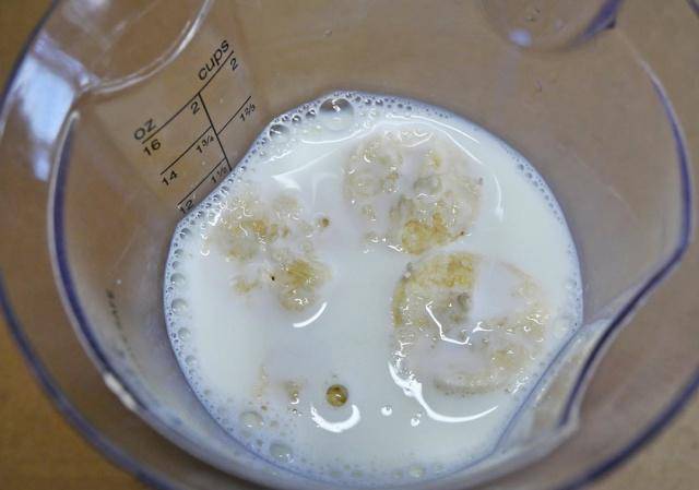 香蕉请选用较熟的香蕉,甜度会比较充足。将牛奶与香蕉搅打成泥。