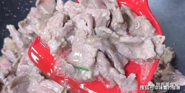 6、牛肉炒干之后,将它暂时捞起来备用。
