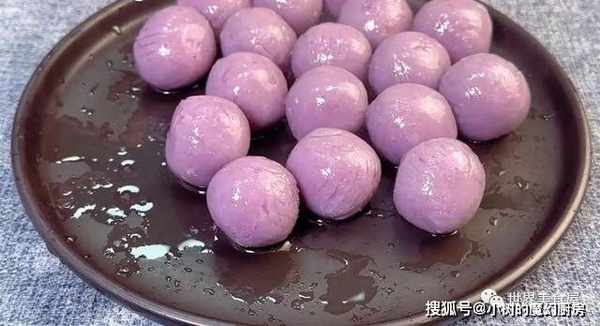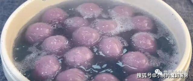 9、搓好的紫薯丸子,热水下锅,煮3分钟后捞起。