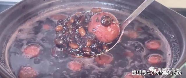 12、汤水煮出紫黑色,这道五黑汤就完成了。