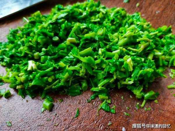 2、拿过案板来,把椿芽充分控干水分,改刀切成碎末,并不是越碎越好,但尽量保持大小一致,就像平常切韭菜馅那样。
