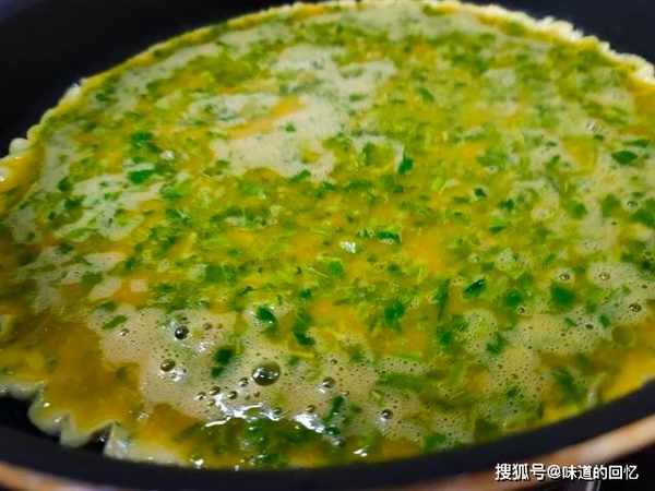 2、煎椿芽鸡蛋饼的时候,油要比平时多一些,这样出锅的成品,味道好吃,还不会糊锅。