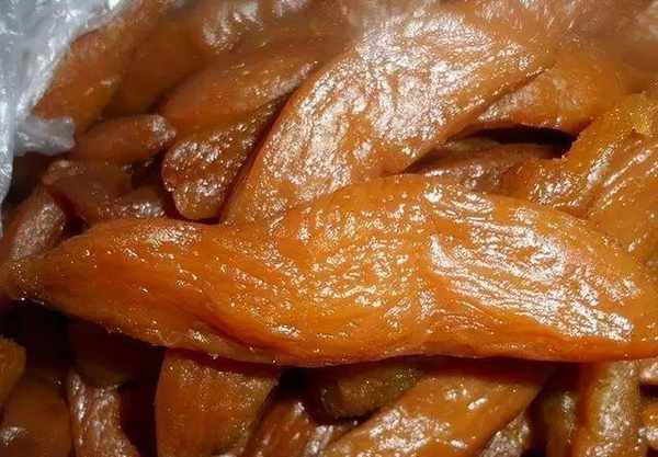 柿饼比较柔韧,老人家牙口不好,就比较难嚼。蒸柿饼和蒸红薯干同样的方法,只要把晒干的柿饼放进锅中,隔水蒸10来分钟,这样柿饼就会变软,香甜软糯又可口,特解馋。
