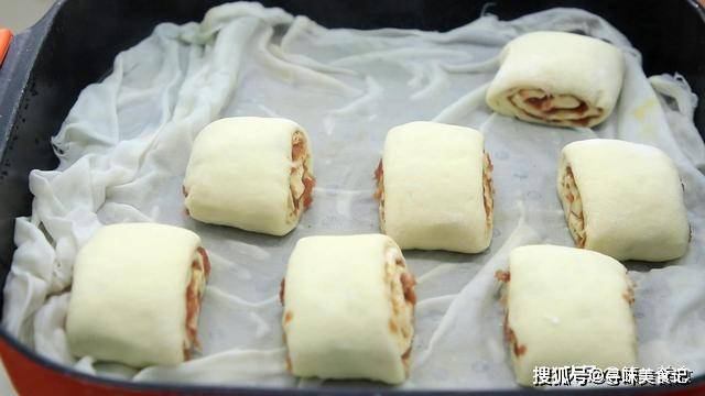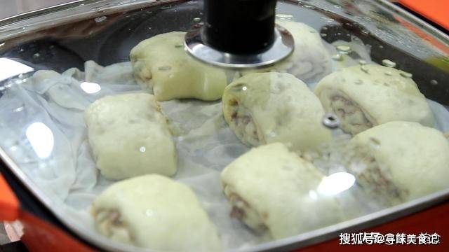 温水的时候,把醒发好的肉卷放入锅内,放的时候面坯和面坯之间要留一定的空隙(面坯在加热的过程会膨胀变大)。