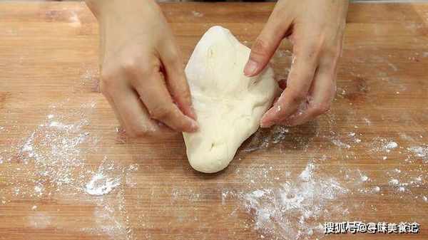 先搅成面絮,用手揉成面团,反复揉搓面团 。