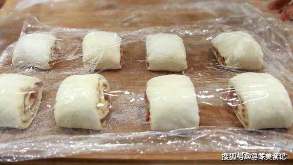 摆放好,两个花卷之间要隔上一点空隙。用保鲜膜盖上,再次饧发8到10分钟左右。