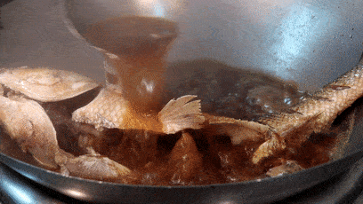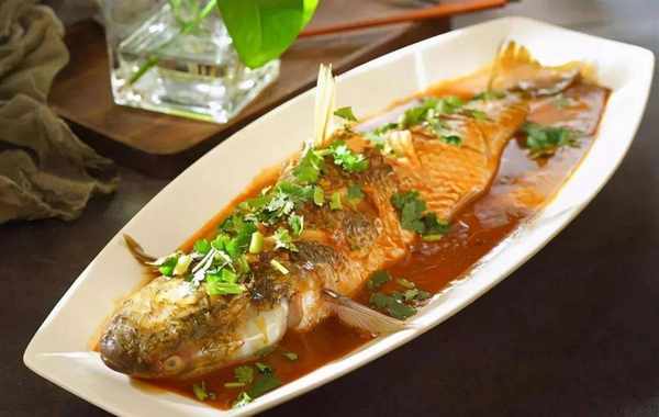 八角炸香后,与姜片、葱、姜、辣椒一起炒出香味;倒入面酱,炒散炒香,加适量味极鲜、米醋;米酒喷锅,加水、适量食盐、白糖;放鱼入锅,大火烧开后转中火炖20至30分钟,不时把汤汁浇在鱼身上,最后收干汤汁出锅即可。