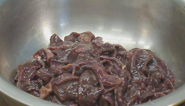 1、猪肝一定要提前浸泡洗干净,不然血腥味太重,切成3毫米左右的片,不能太薄,一下锅就老了。切好以后再清洗一下,准备腌制。