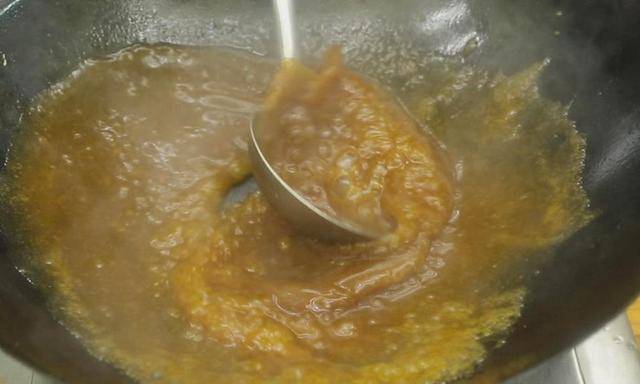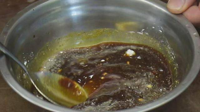 6、锅里留底油,把葱姜等大料一块炒香,沿锅边淋点料酒,再舀进去两碗水,加老抽、生抽、蚝油、十三香、鸡粉、少许糖、一点盐调味,大火咕嘟个三五分钟,把料香味熬出来。然后用密漏打出料渣。