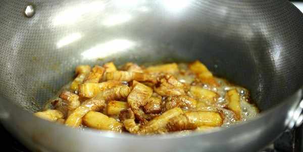 3、给煸炒过的五花肉上色