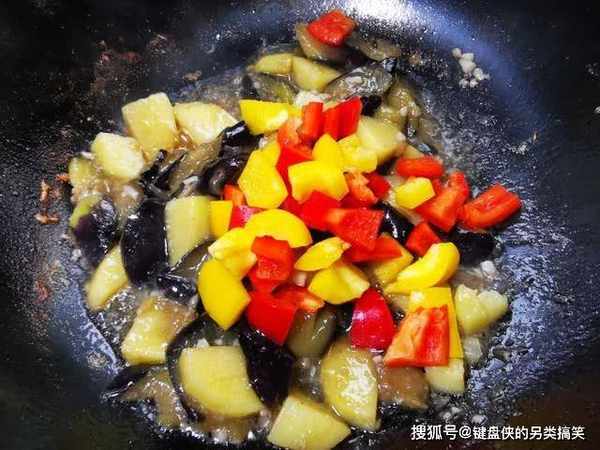2、如果不喜欢吃太软烂的茄子可以提前将土豆焯水,这样大大减少了土豆的炒制时间,和茄子在一起炒几分钟就可以出锅享用了。