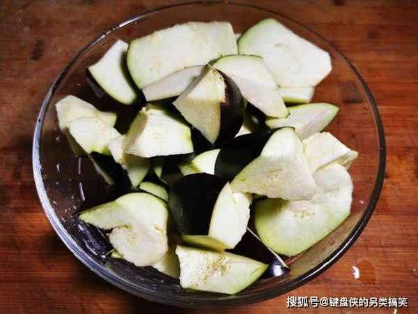 2、切成滚刀块的茄子,放入大碗中,撒入一勺食盐,边撒边拌,直到每一块茄子上都有盐,之后放在一旁腌制半个小时。茄子中的水分含量很高,放盐腌制的目的是为了把茄子中的水分逼出来,这样再去炒,茄子不会那么吸油,而且调味品也会更好的入味,让茄子吃起来更好吃。