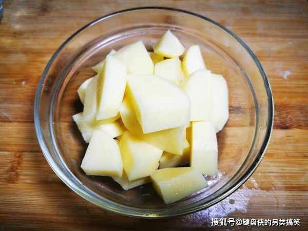 5、一个小小的土豆,洗净去皮切成小块状,放入水中浸泡几分钟,以去除多余的淀粉,炒的时候才不会糊掉。土豆是一种一年四季都有卖的菜,容易保存而且吃法多样,土豆中淀粉含量很高,有很好的饱腹感,但是缺点是营养比较单一,有人减肥的时候喜欢吃土豆,不至于让自己那么饿,而且土豆片贴脸还有不错的美容护肤作用,是爱美女士喜欢的食物。