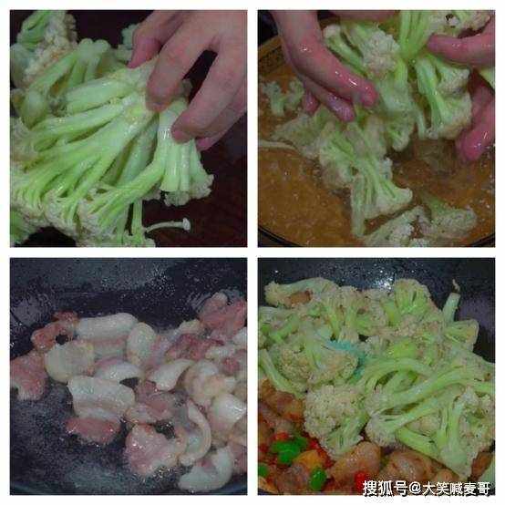 主要食材:花菜,五花肉,盐,姜,葱,豆瓣酱,味精,白糖,老抽,生抽
