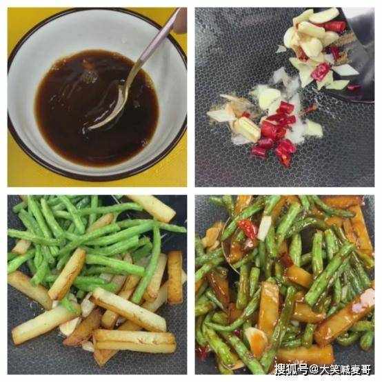 6. 最后将备用的土豆和豆角放入锅中,再将调好的酱料倒入锅中,开大火炒匀后即可出锅食用。