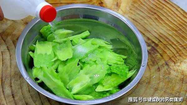 苦瓜想要去除去苦涩味,先焯一下水,再放入食盐、白醋,用手揉搓一会,这样吃起来味道微苦,不失清爽。