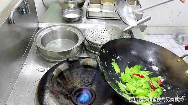 现在,我们开始烹饪,锅内烧油,油热后,倒入蒜末,红椒,炒出蒜香味后。