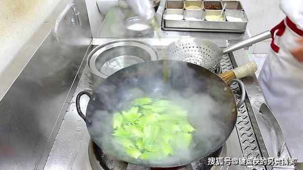 然后放入苦瓜。加入食盐,味精,加一点清水,可以更好的化开调料,快速翻炒,再加一点水淀粉。
