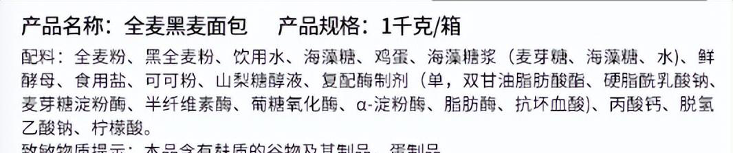 相反,看看电商平台上卖得遥遥领先的“全麦面包”,就会知道绝对不是健康的食物。 不仅含有很多糖,还含有非常多的添加物。 这个假黑麦面包,我真的不建议你买。