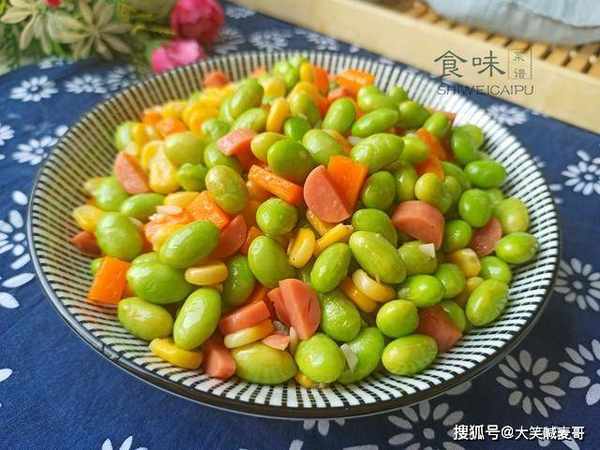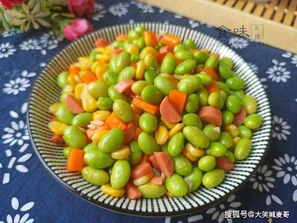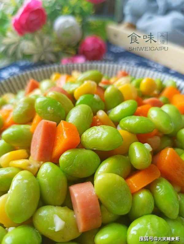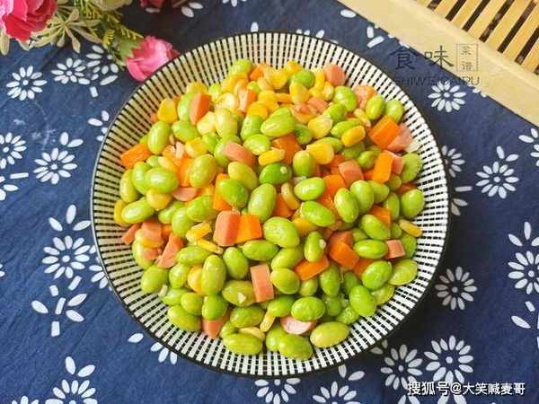 常吃大排档的人,对毛豆一定不陌生吧,“水煮毛豆”非常受欢迎,它是大豆作物一种未成熟的豆类,因豆荚上有细毛,所以称为毛豆,它的营养价值很高,还富含各种维生素、矿物质等营养成分,对儿童的生长发育有好处,7月份正是收获季节,有连带豆荚卖的,也有只卖豆粒的,毛豆最经典的吃法,除了水煮以外,今天再教你一个新吃法,五彩斑斓,看着就很有食欲,不煮也不蒸,鲜香又下饭,老人孩子都爱吃。