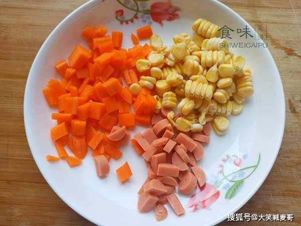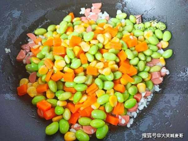 每次孩子挑食时,我就做这道菜,有玉米粒、火腿肠、胡萝卜、豆粒、蒜末组成,五颜六色的非常好看,对小朋友很有视觉冲击力,不知不觉一碗饭就下肚了,此时,还能跟小孩子讲曹植的《七步诗》:“煮豆燃豆萁,豆在釜中泣。本是同根生,相煎何太急?”岂不更完美。