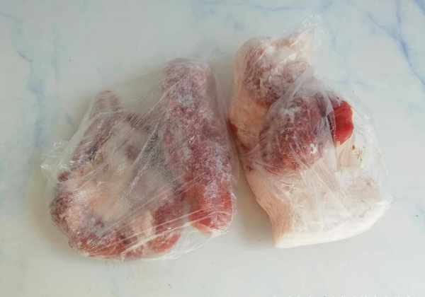 这是婆婆年前买的土猪肉,婆婆说带点肥肉炒辣椒更香,特意拿了一袋肥一袋瘦的给我们。