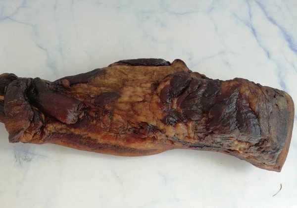 腊牛肉,也是烟熏过的,样子不太好看,但绝对好吃!这是江西和湖南老表们的最爱,我喜欢加冬笋、蒜苗、干辣椒一起炒,超级下饭的!
