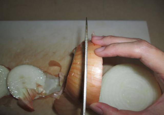 面包粉可以自行用白吐司制作唷!首先,将洋葱去头、去尾,并逆着纹路切成四等分,如果切错就不是圈圈状,而是变成洋葱条啰~~