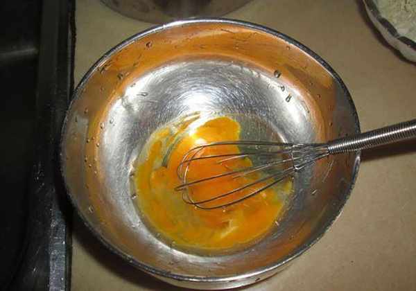将一颗全蛋打散,如果还没吃过全蛋,建议可用蛋黄即可,以免宝宝过敏哦!