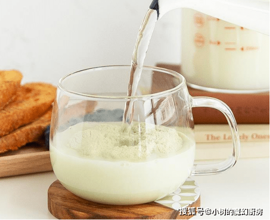 ,它是由黑豆和黑米为原料研磨成的豆浆粉,成单独的小袋包装,每次一袋倒进杯子里,加入热水搅拌即可饮用,比自己用豆浆机操作更加方便。