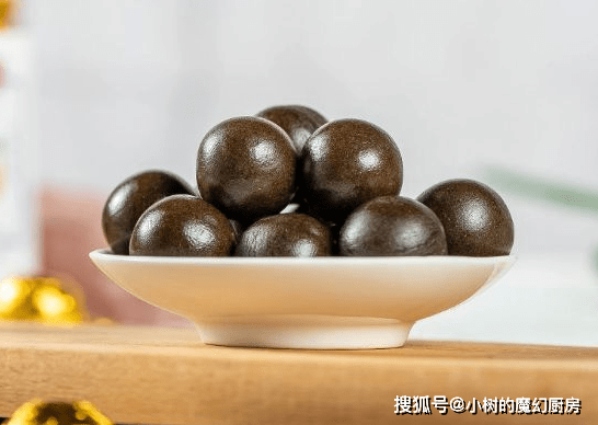 的主成分是带有酸味的酸枣仁,相比山楂的酸度有所不同,更容易让人接受一些。它还另外加入桑葚、桂圆、蜂蜜等食材来中和酸枣仁的酸涩,经过传统手搓加工方法制成圆滚滚的丸子状,吃起来酸甜清香,很是利口。