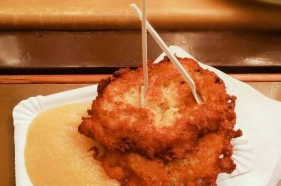 炸土豆饼相对比较大油,一般一次给你三个,周边略焦脆,三个吃完确实比较油腻了,推荐加个50cent的苹果酱,味道很搭又减油。炸土豆饼可是热红葡萄酒最好的前餐。土豆还有煎土豆和旋风土豆等做法。煎土豆和食堂常见的差不多,人家卖个新鲜嘛。旋风土豆现在国内也有,味道和软薯片似的。