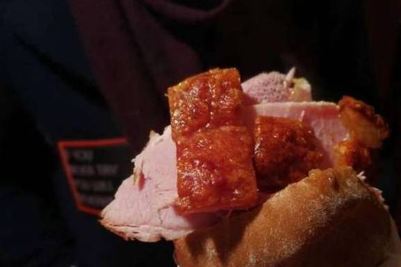 大烤串那是每年最火爆的摊位了,味道和国内新疆羊肉串有的一拼。一般是猪肉块,半米长的竹签顶上插一块脆脆的小面包,小食量的妹子建议两人拼食一份。