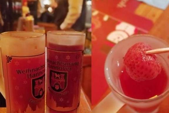 Tipps:圣诞市场会有不同国家的特色热红酒卖,不同国家的热红酒甜度酸度都不一样,它还有着不同的名字,除了德国叫Glühwein,还有瑞典的Glgg,法国的VinChaud。小朋友可以点无酒精度的比如alkoholfreiErdbeerbowle,会很甜,还有草莓在里面,店家会给你个牙签插着吃。