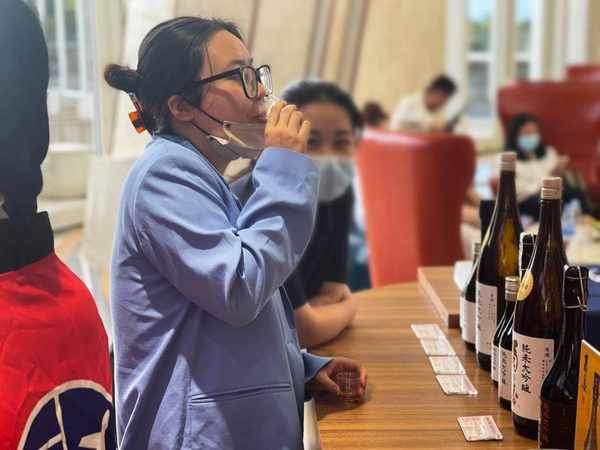 顾客们也在菊乃香品鉴专家的指引下,共同享受品鉴的乐趣。从欣赏酒液澄澈的色泽,到浅嗅专属酵母带来的宜人香气,体会淡丽圆润的酒体轻触味蕾,再细细感受旨味的显现与层次变化,由浅入深寻味那闪耀的发酵世界。