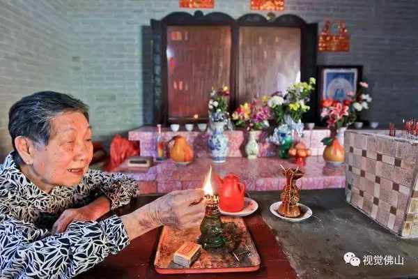 妈姐黄丽娥在给姐妹们点油灯。*视觉佛山