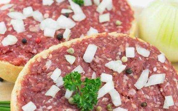 第五个就是猪肉糜了,生猪肉切碎之后,放上一些配料,像三明治那样直接吃……德国人这种生猪肉的吃法,也太生猛了吧!