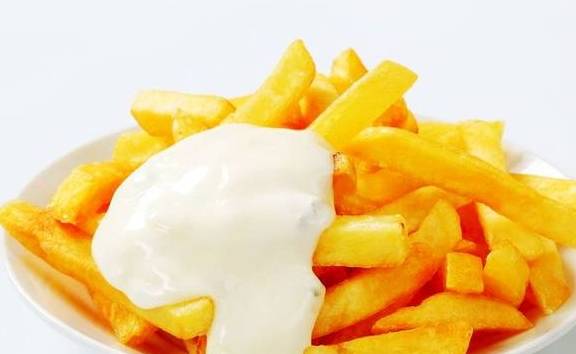 最后这个算是比较正常的了,将薯条浇上蛋黄酱,或者番茄酱与蛋黄酱都浇上,这种组合出来的味道也是很奇特啊,胖友们敢不敢试试看?