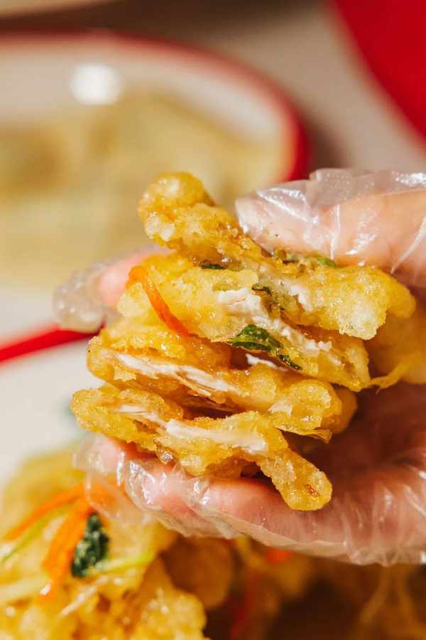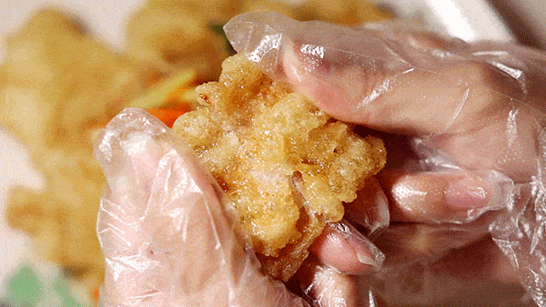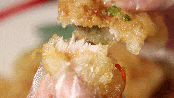 用虾仁为原料,加东北产玉米粉调制而成的浆水精心烹制,虾仁充分吸收了酱汁的味道,入口Q弹,咸鲜爽口,一口一只,吃到停不下来了!