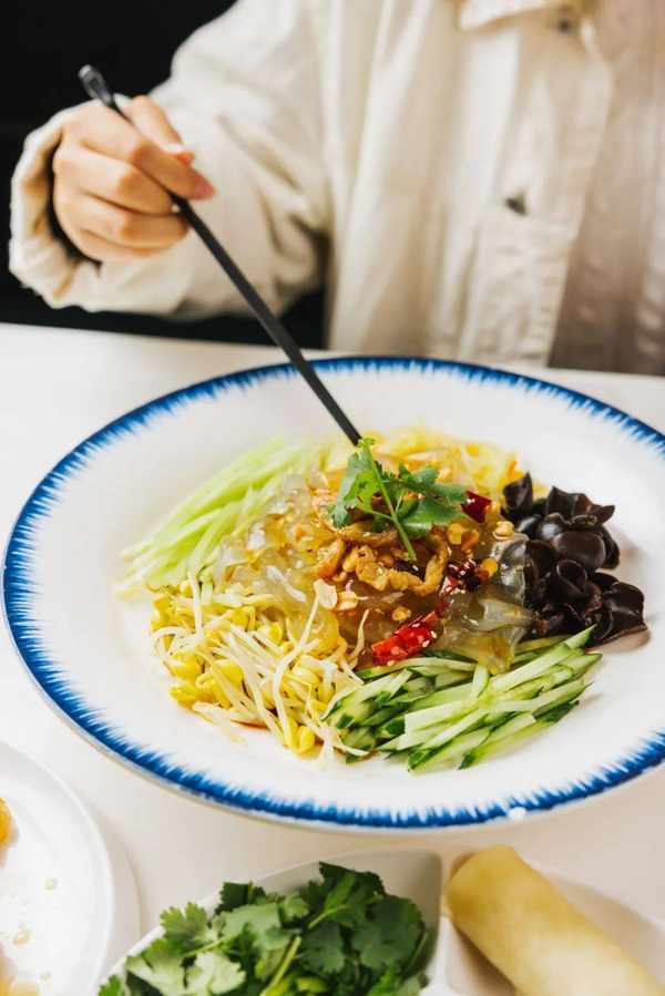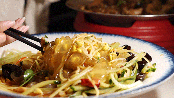 不要看这份大拉皮平平无奇,但和满满当当的菜肉码扮在一起,酸酸辣辣的香气让人忍不住咽口水!拉皮QQ弹弹,清凉爽口,吸溜上两口,就一个字——爽!