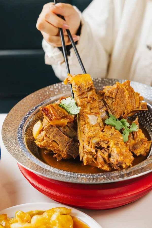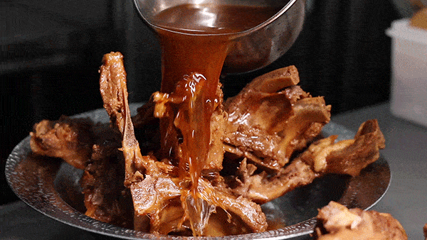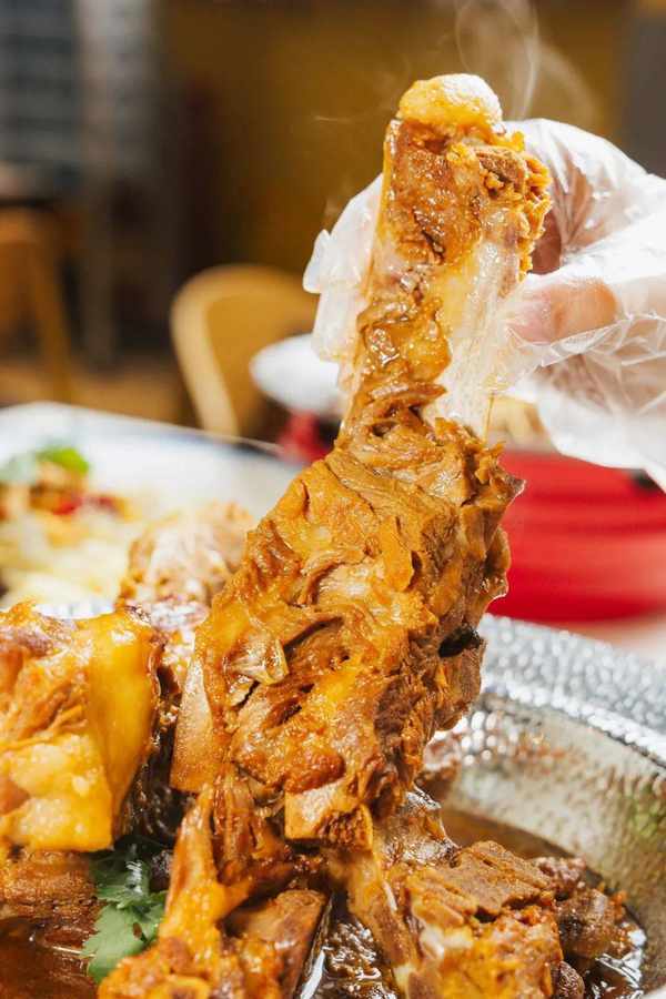 酱骨头当然要上手撕扯着吃,才符合它粗放狂野的气质。软嫩的肉轻松一丝就能撕开,热气腾腾的特别有食欲!