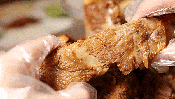 好吃的酱骨头很考验师傅的耐心和经验,从准备到卤肉,前后要10小时才能完成!卤出来的酱骨头软烂适中,块块大肉饱满多汁!