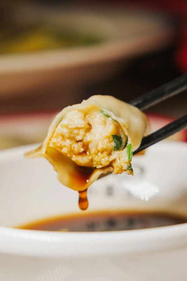 五分钟即可出锅,煮太久会变柴。趁热咬破薄而透明的面皮,露出白嫩多汁的鱼肉,汁水鲜甜四溢。蘸上醋汁让香味更上一层!