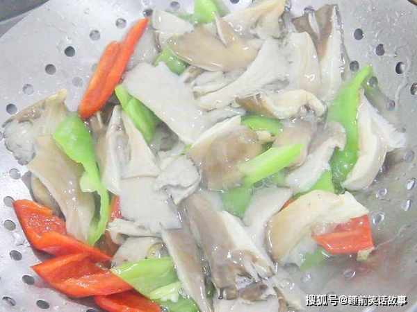 起锅烧水,水开后倒入蘑菇焯水1分钟,捞出后冲凉控水备用。
