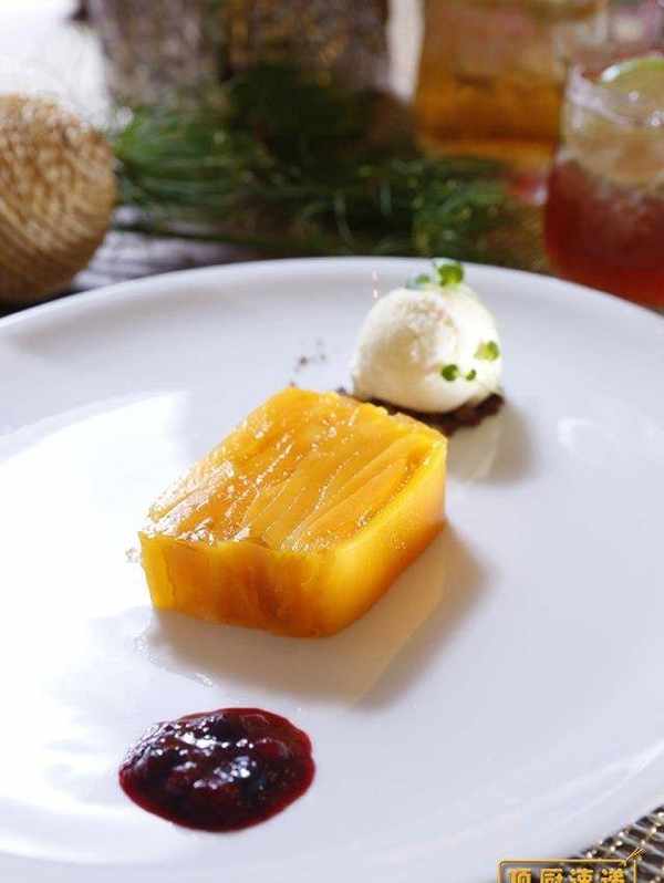 Tips:可以选择用23种不同品种的芒果,增加芒果的滋味与口感,可以让Terrine的层次更丰富。