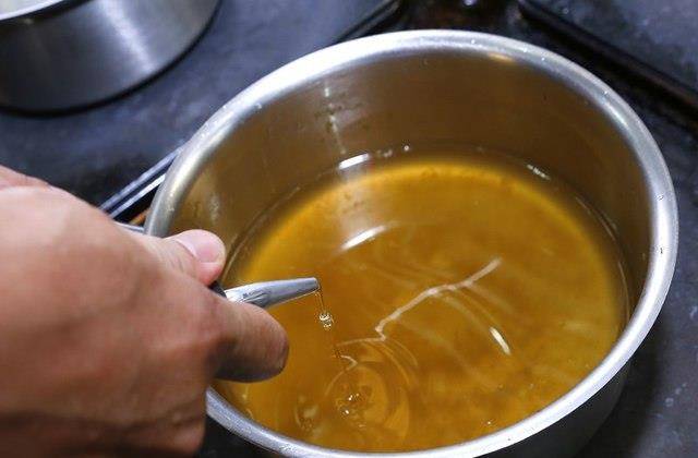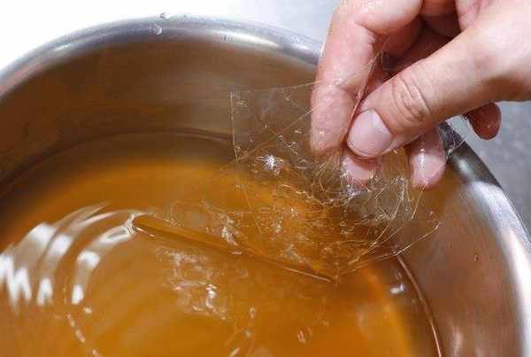 将20片(2.5g/片)吉利丁放入1公升的蔬菜汤中,搅拌均匀后,就是具有胶质的蔬菜汤。